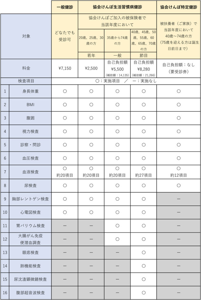 ・協会けんぽ生活習慣病予防健診(一般・節目・若年)